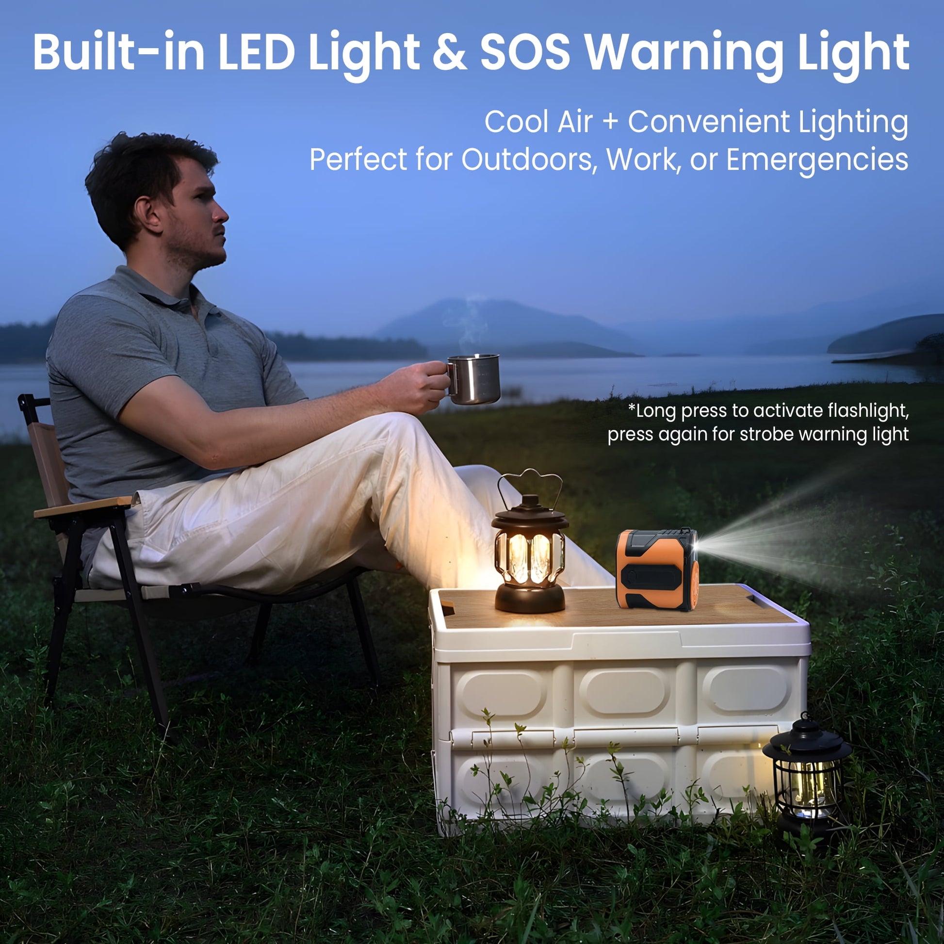 - Hands-free multifunctional clip fan: This personal fan with clip can be used as a waist fan by being clipped on a belt or trousers to lower the body temperature, clipped under a T-shirt as a shirt fan, or used as a neck fan by using a lanyard to free hands when traveling in summer. The personal fan also has built-in LED light and a flashing SOS light, which is very suitable for outdoor activities at night. Whether you are walking at night or exploring outdoors, this fan can provide the necessary heat dissipation and vision when you need it most.