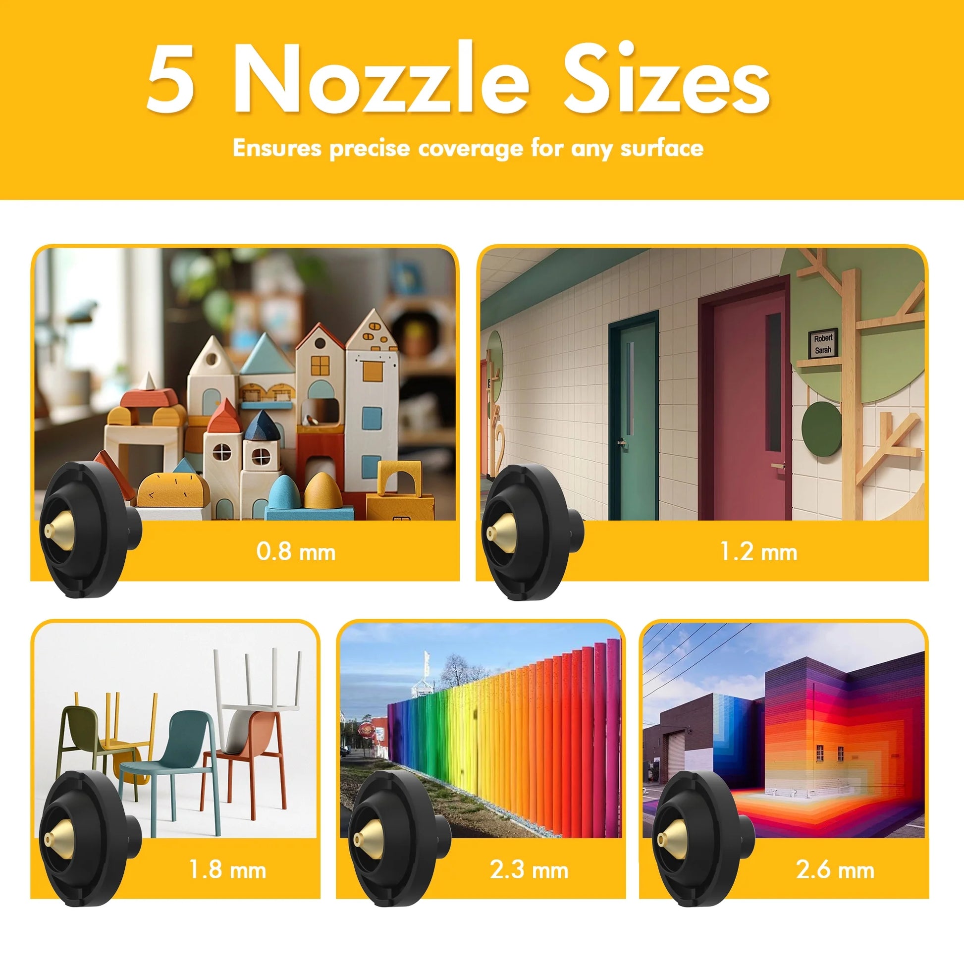 - 5 Copper Nozzles (0.8mm–2.6mm) & 3 Spray Patterns (Horizontal/Vertical/Circular): Whether it's delicate work or large surfaces, this kit covers it all.