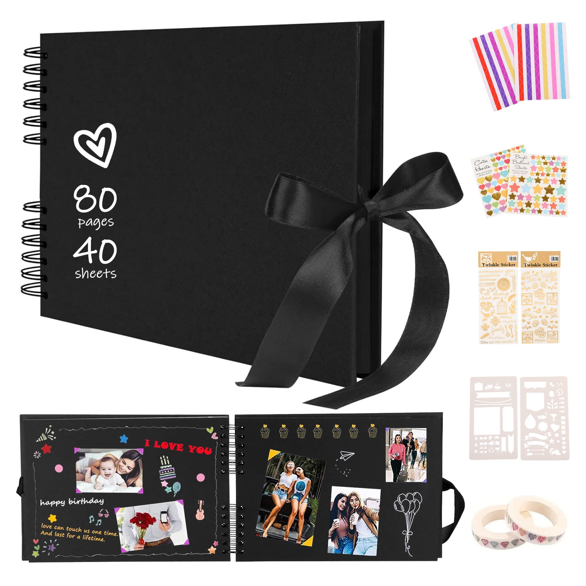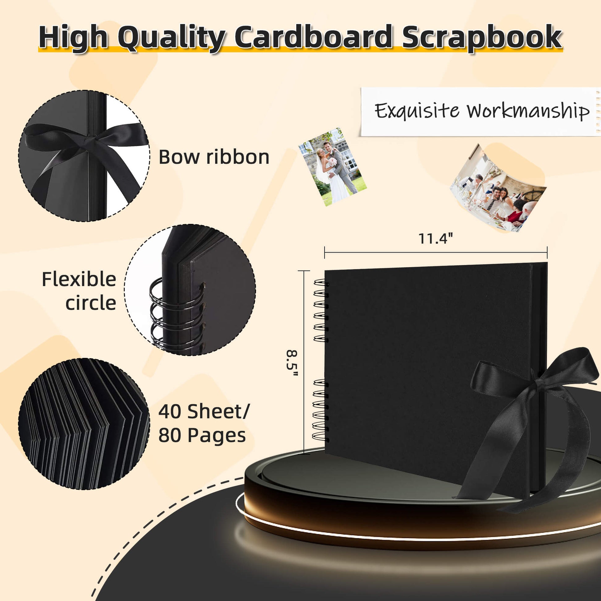 Fixdono Scrapbook Photo Album with 80 Pages, DIY Photo Album Scrapbook for Wedding, Anniversary, Birthday, Travel, Friends, Baby, 11.4 x 8.4"